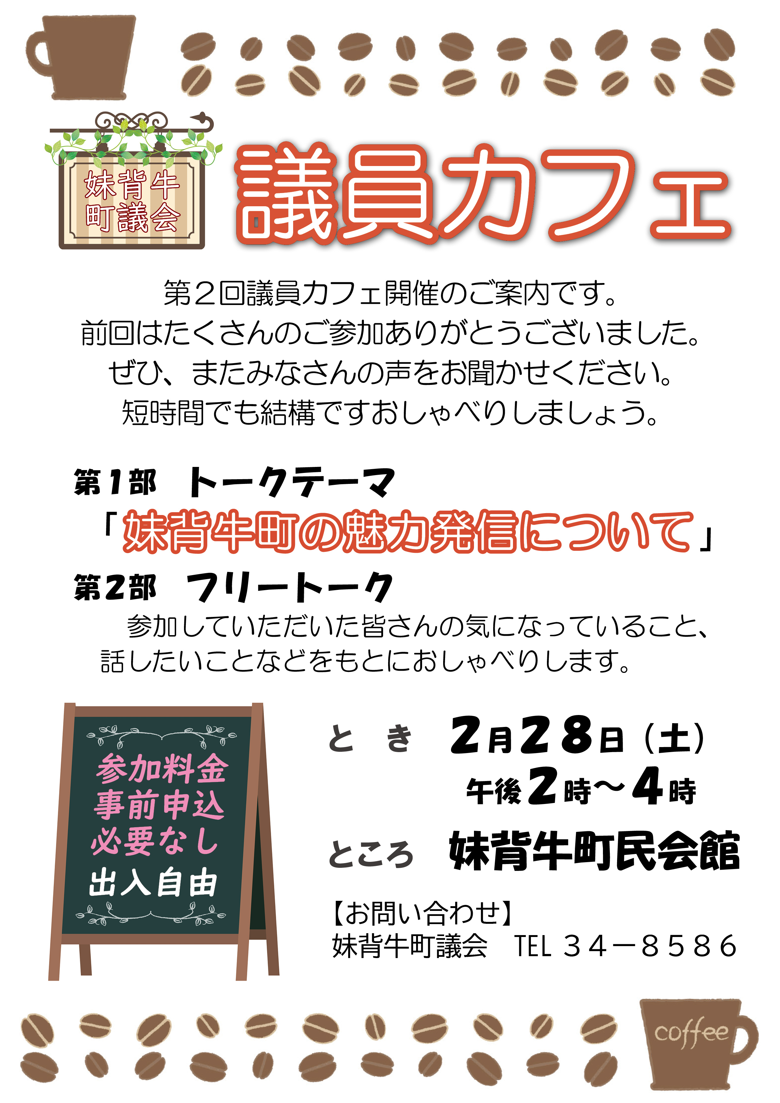 トップ > 議会 > お知らせ > 議員カフェを開催します