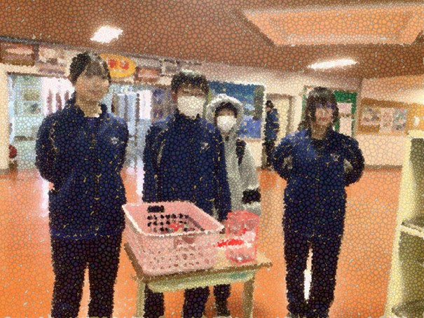 後期の生徒会執行部が、赤い羽根共同募金への協力を呼び掛けています。