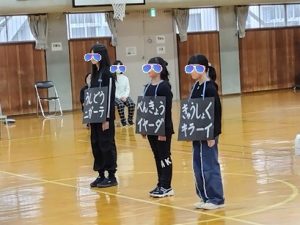 ↓ 1年生からは、各学年代表とゲームで対決する発表をおこない、盛り上げてくれました。