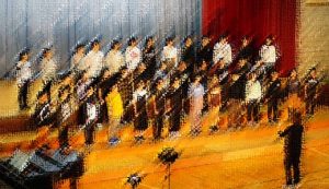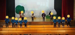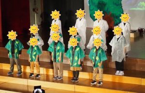 ↓ 4年生劇「パオパオの木」 ↓ 5年生「和の力~未来へ届け」(和太鼓演奏)
