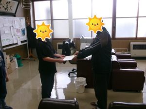 ↓ 感謝状を受け取る3年生代表 ↓ 感謝状を受け取る4年生代表
