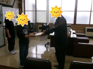 ↓ 感謝状を受け取る3年生代表 ↓ 感謝状を受け取る4年生代表