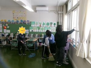 12月15日(月)と17日(水)に普段の清掃より時間をかけて行う「ていねい清掃」を実施しました。広い校舎を少人数で清掃することは大変ですが、子どもたちは高学年のリーダーや担当教職員の指示のもと、異学年で協力しながら隅々までしっかりと取り組んでいました。おかげで、校舎はとてもきれいになり、気持ちよく新年を迎えることができそうです。清掃に取り組んだ子どもたち一人ひとりに感謝します。