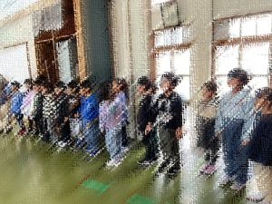 ↓ 現1年生と顔合わせ            ↓ お行儀よくお話を聞く新現1年生