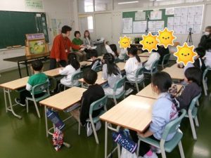 2月19日(木)、1・2年生に向けて、人権擁護委員の皆様による「人権教室」を開催しました。はじめに、いじめをテーマにした紙芝居を見た後、感じたことを発表し、紙芝居に登場した魚へ手紙形式で自分の思いを書きました。子どもたちからは、「みんなを助けてすごいと思った」「これからは誰かがいじめられていたら助けてあげたい」などの感想が寄せられ、一人ひとりが思いやりの大切さについて考える貴重な機会となりました。